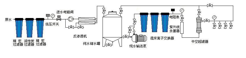 l RO反渗透纯水机 l 高容量交换柱 l超滤过滤器 l压力储水罐 l在线电阻(电导)监测仪